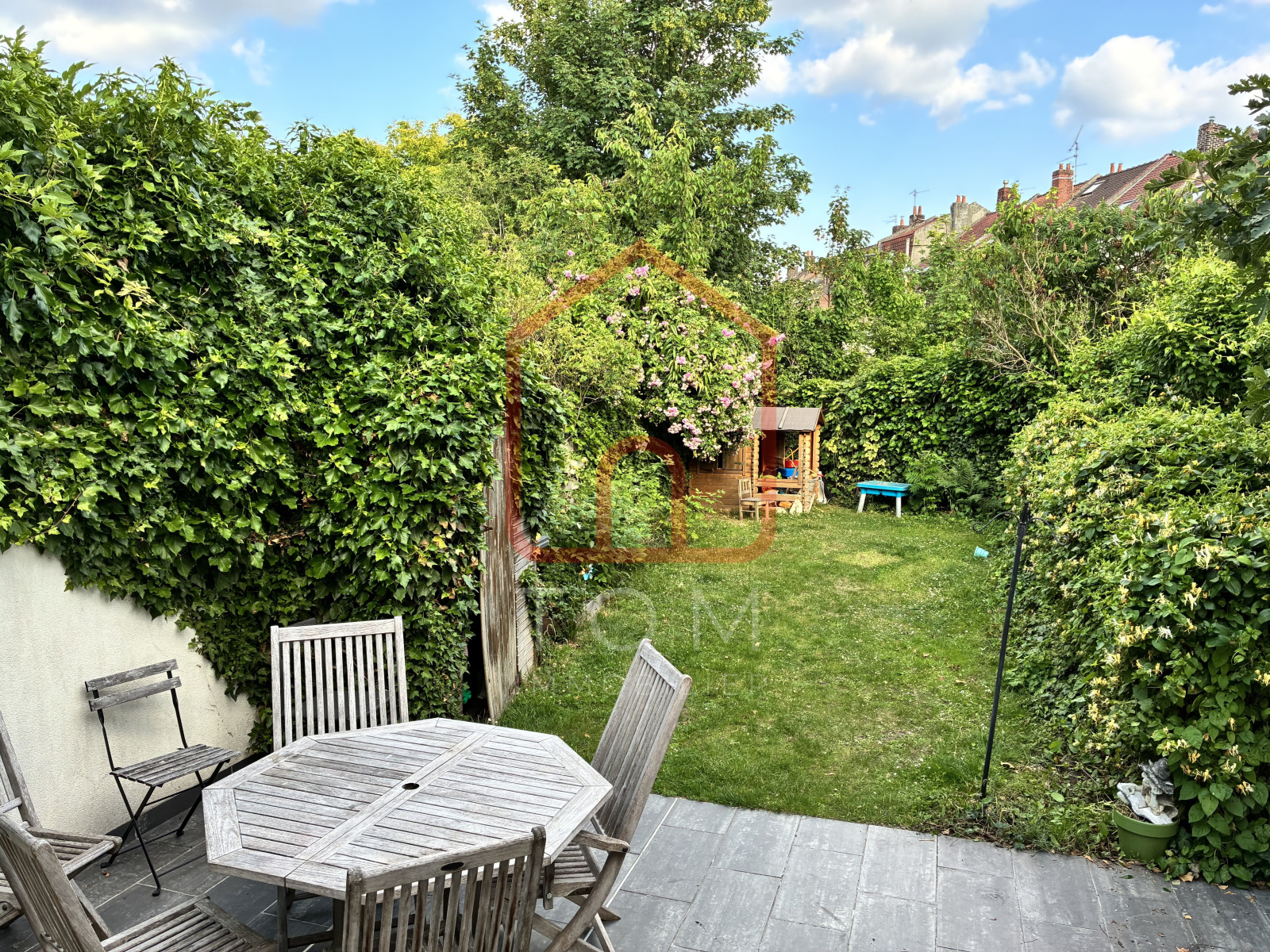 Cette large 1930 a une surface de 102 m² habitables, elle est composé d'un beau séjour de 27m² en parquet chevron prolongée d'une grande cuisine équipée, elle possède 3 chambres + un bureau aux étages. La salle de bain se situe au rez de chaussée. Le tout complété par une cave et un beau jardin.
